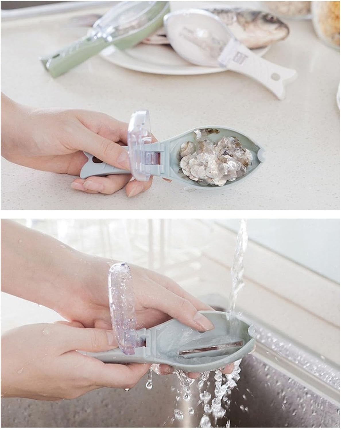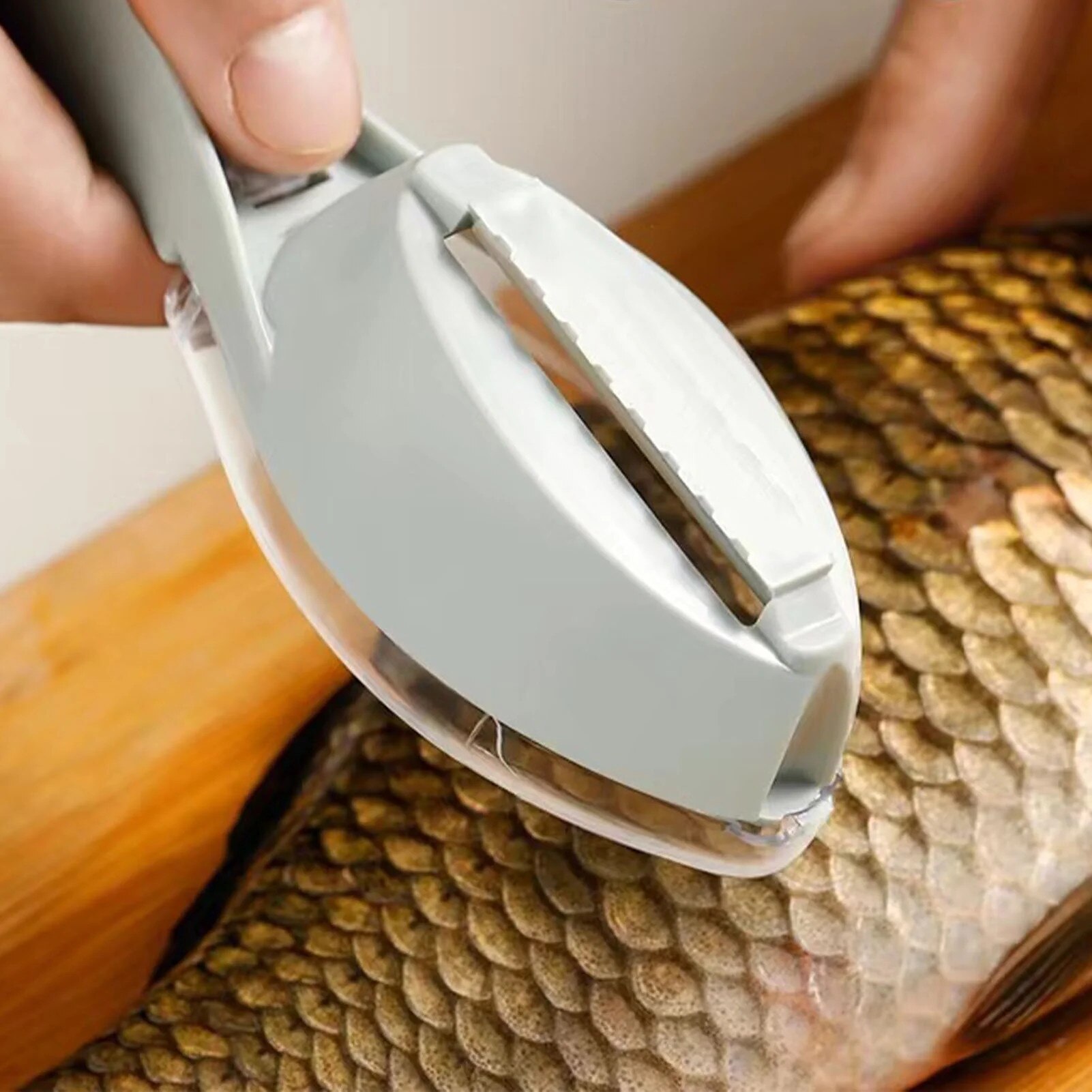Uită de haosul din bucătărie. Curățătorul nostru manual colectează solzii direct într-un container integrat. Zero dezordine, zero efort.